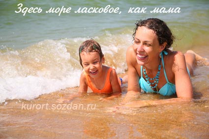 маленьким детям. Не пересолённая вода :) с набегом волн без